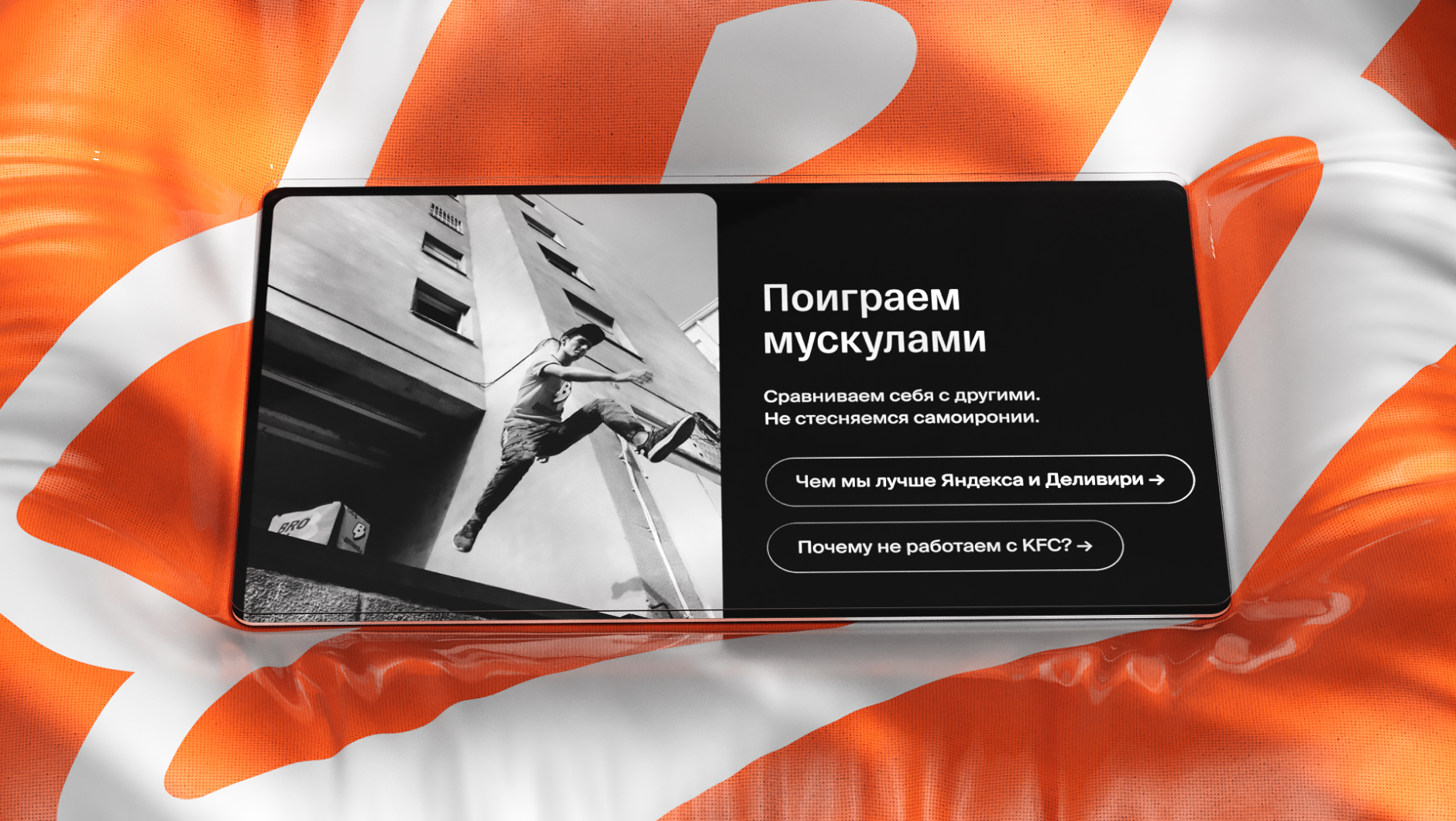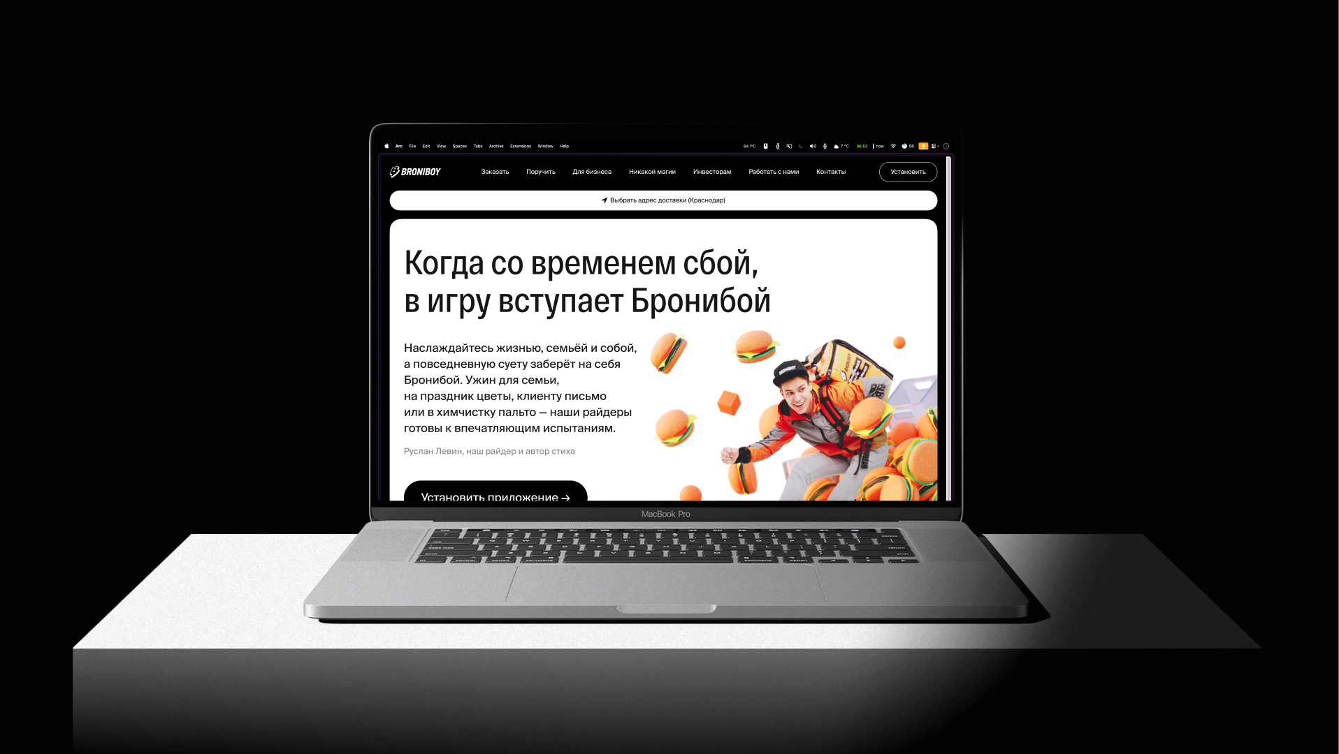 У Бронибой не было позиционирования. Сервис конкурировал с Яндекс.Едой и Delivery Club, но ничем от них не отличался ни визуально, ни по коммуникации. Мы изучили зарубежные референсы, разобрали конкурентов и нашли угол, который федеральные игроки физически не могут занять: большие платформы работают для всех и именно поэтому они ни для кого конкретно.