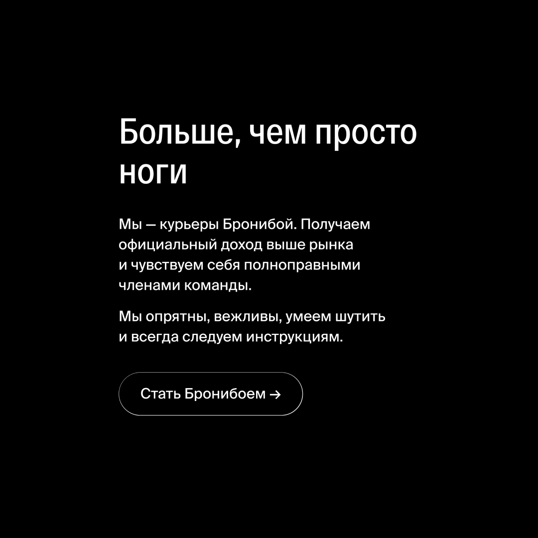 Бронибой стал тем, кто приходит на помощь, когда время играет против тебя. Курьер как союзник. Сервис, который знает твой город лучше навигатора.